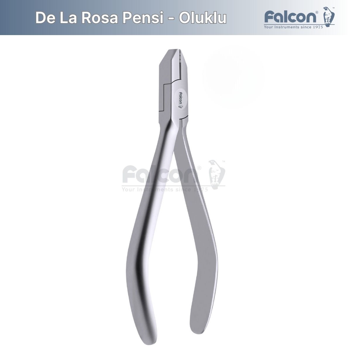 De La Rosa Pensi - Oluklu, tel bükme işlemlerinde yüksek hassasiyet ve kontrol sağlayan özel bir alettir. Falcon markasının sunduğu bu pens, oluklu tasarımı sayesinde tel üzerinde güvenli ve etkili bükme işlemleri yapmanızı sağlar. Diş hekimliği ve ortodontik uygulamalarda kullanıma uygun olan bu pens, profesyonel kullanım için ideal bir seçimdir.