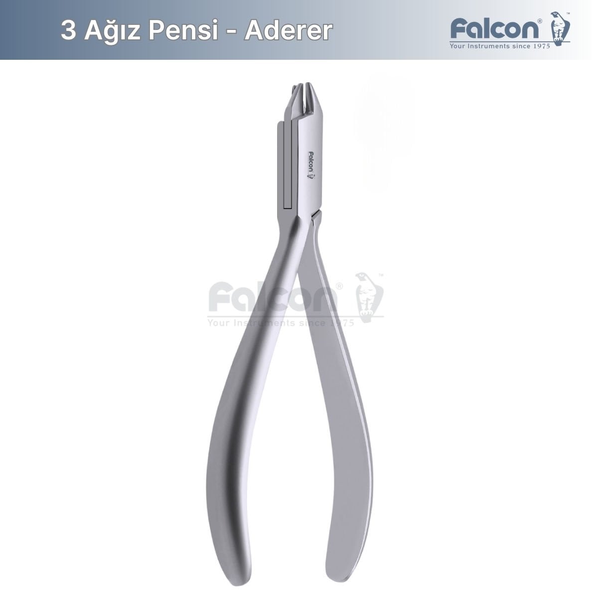 Ortodontik Pens - Aderer 3 Ağız, diş hekimliği ve ortodontik uygulamalarda tel bükme işlemlerinde yüksek hassasiyet ve kontrol sağlayan özel bir alettir. Falcon markasının sunduğu bu pens, .030” kalınlığına kadar olan tüm tellerle uyumlu olup, etkili ve güvenilir kullanım sunar. Ortodontik işlemler sırasında gereken hassasiyet ve konforu sağlayarak profesyonel kullanım için idealdir.