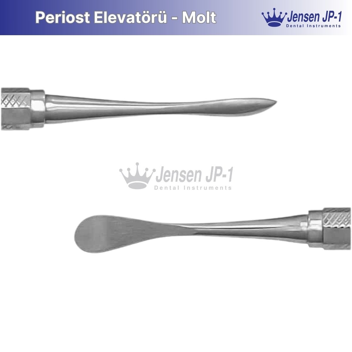 Ürün Tanıtımı: Periost Elevatörü - Molt, periostu (kemik zarını) nazik bir şekilde kaldırmak ve cerrahi işlemler sırasında kemik yüzeyini korumak için kullanılan hassas bir cerrahi alettir. Jensen JP-1 markasının sunduğu bu periost elevatörü, cerrahların daha kontrollü ve etkili bir şekilde çalışmasını sağlar, böylece operasyonların başarılı bir şekilde gerçekleştirilmesine yardımcı olur.