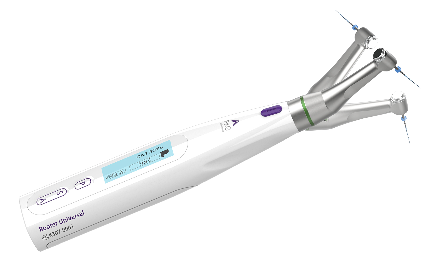 The Rooter® Universal, apex locator ile entegre edilmiş kablosuz bir endodontik motordur. Kullanım kolaylığı için 3 çalışma moduna sahiptir: